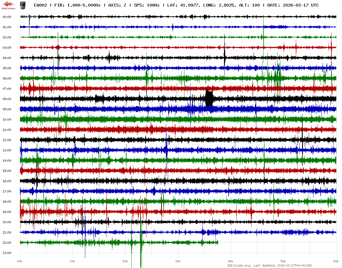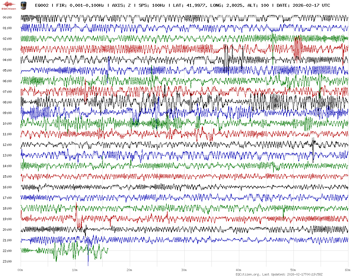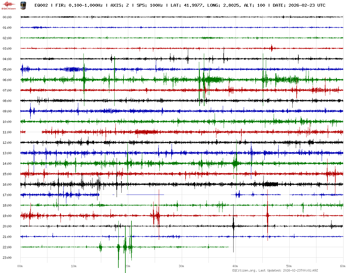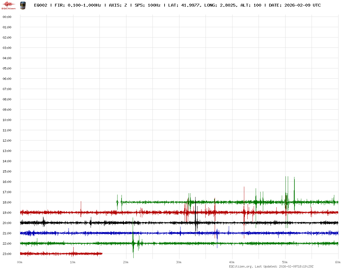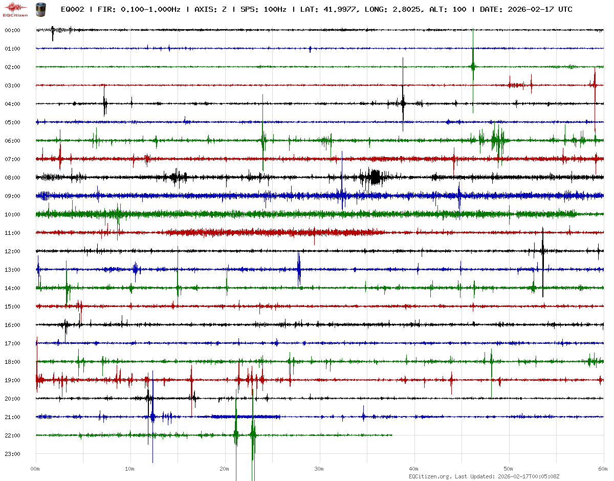Traffic, construction, everyday vibrations, and even a garbage truck generate vibrations that can appear on the helicorder as abrupt movements or unusual patterns. These don't always correspond to actual seismic activity, but rather reflect daily interaction with neighbors, public services, and the constant rhythm of the city.