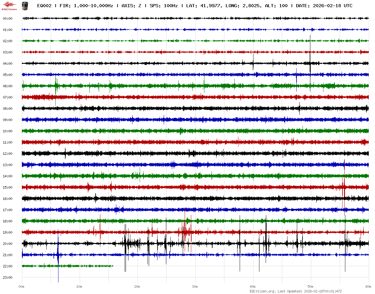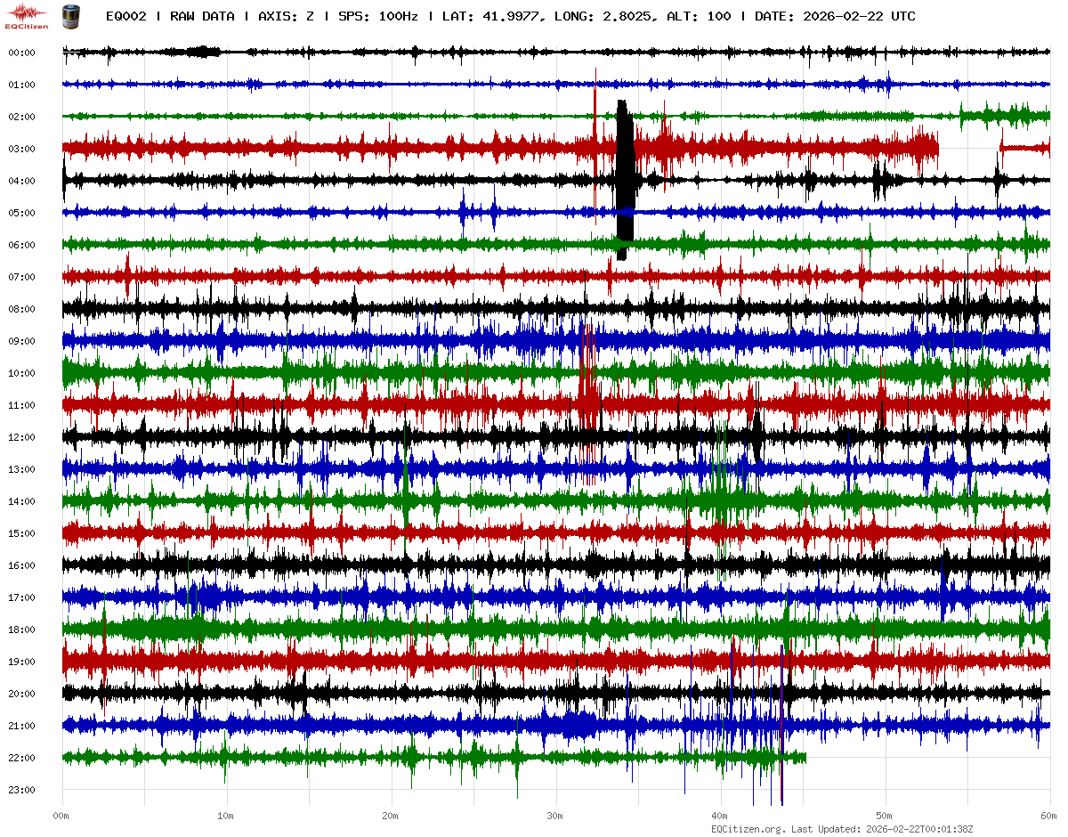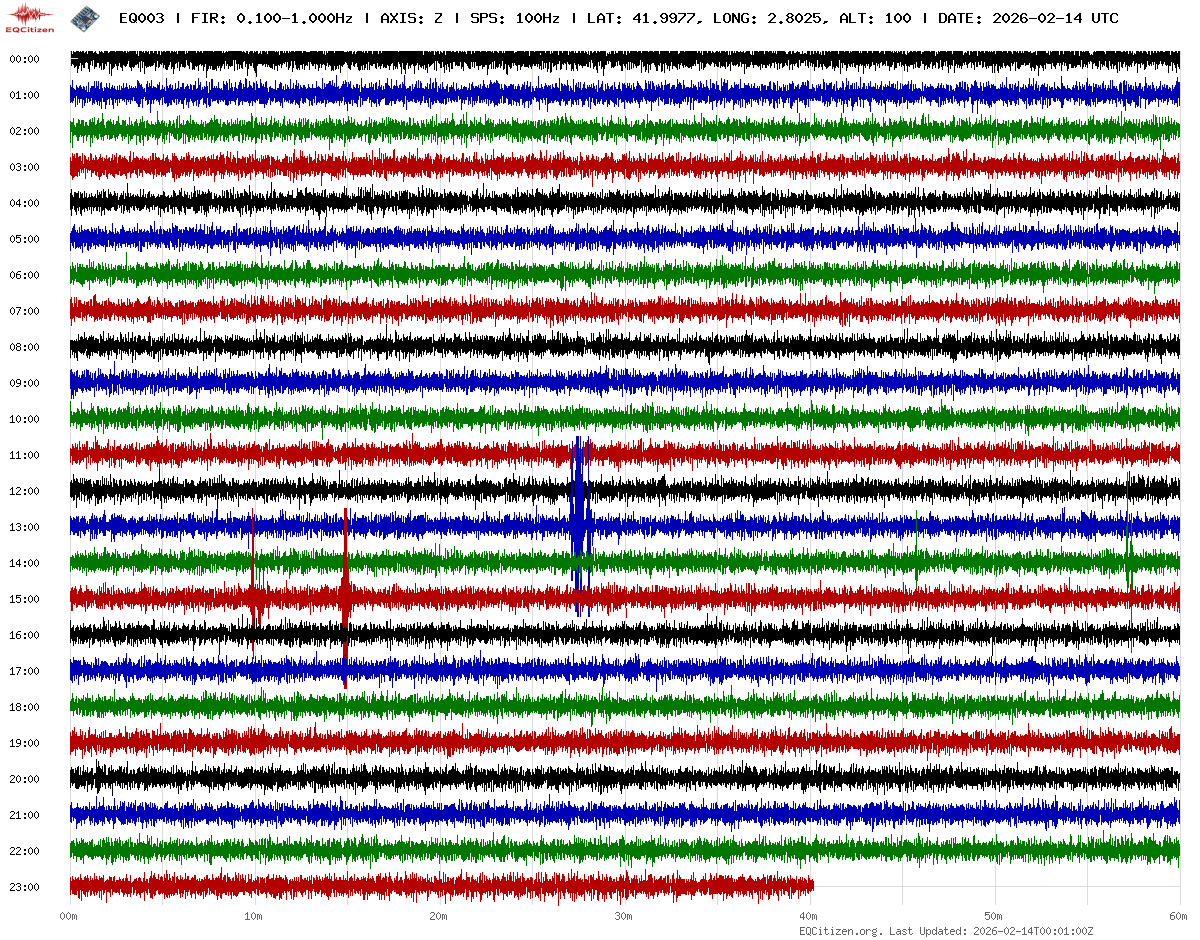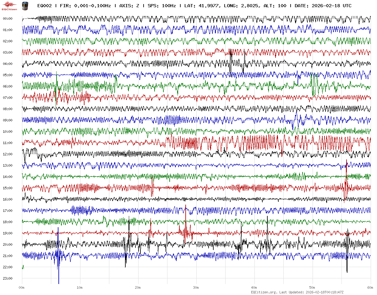 Traffic, construction, everyday vibrations, and even a garbage truck generate vibrations that can appear on the helicorder as abrupt movements or unusual patterns. These don't always correspond to actual seismic activity, but rather reflect daily interaction with neighbors, public services, and the constant rhythm of the city.