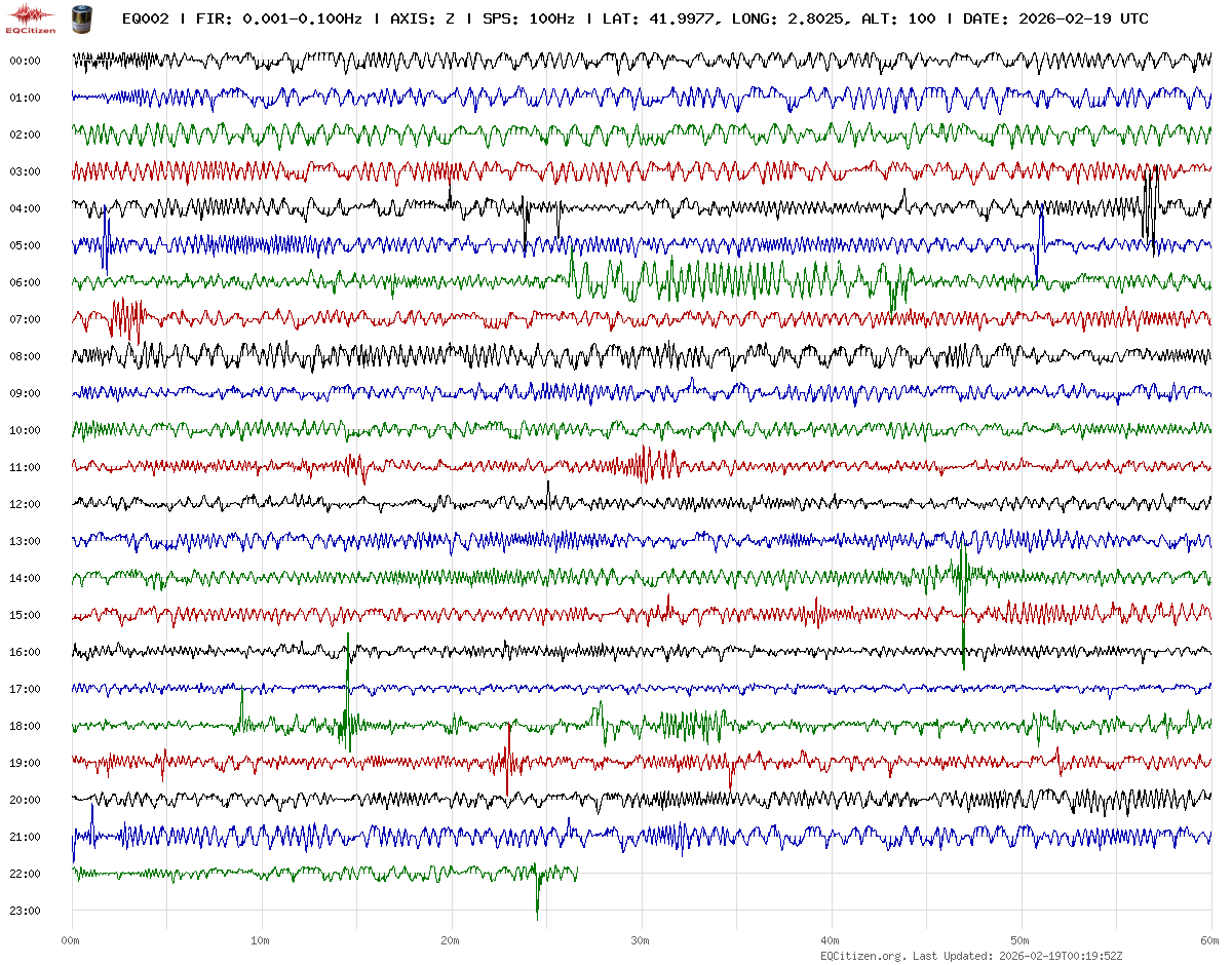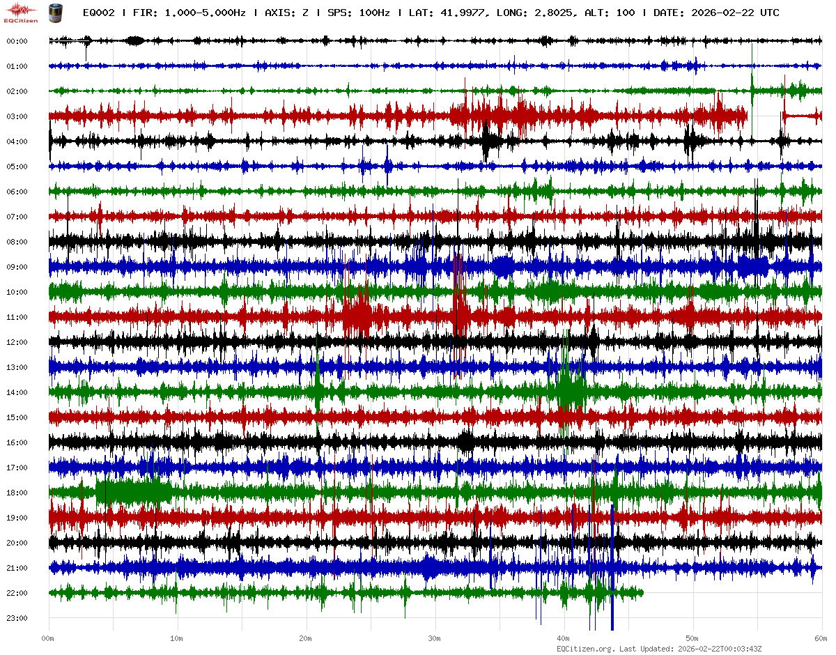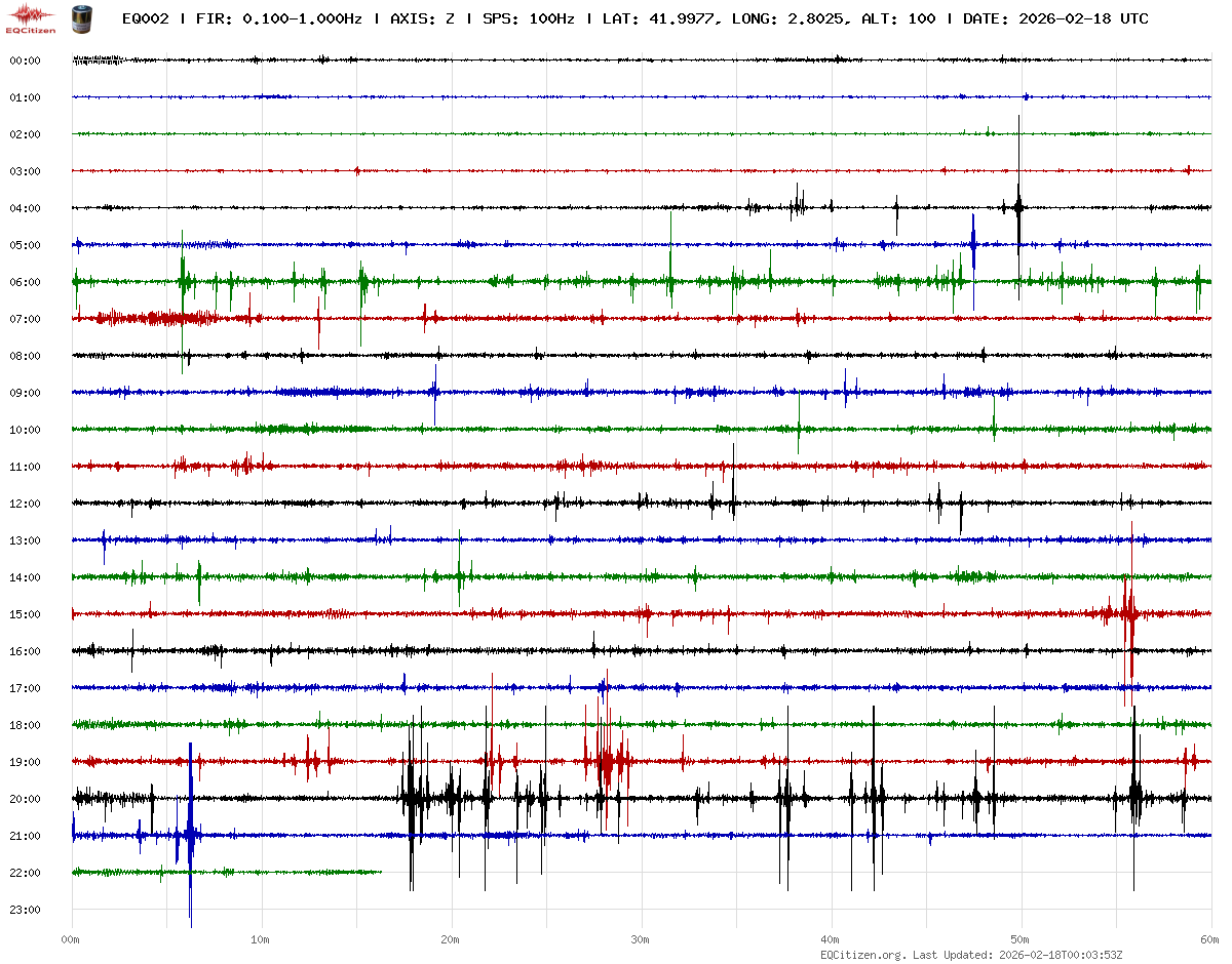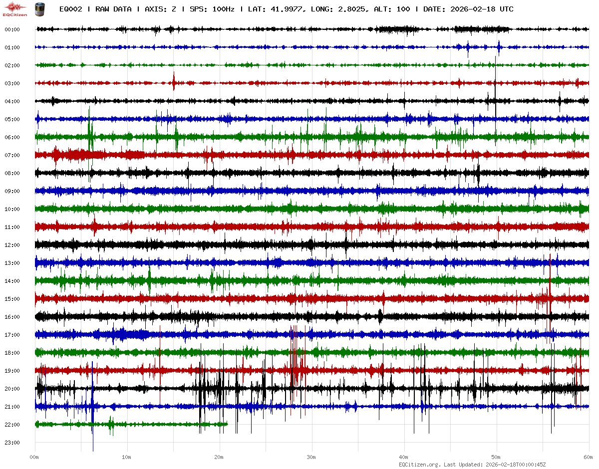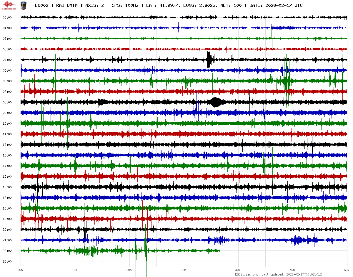 Traffic, construction, everyday vibrations, and even a garbage truck generate vibrations that can appear on the helicorder as abrupt movements or unusual patterns. These don't always correspond to actual seismic activity, but rather reflect daily interaction with neighbors, public services, and the constant rhythm of the city.