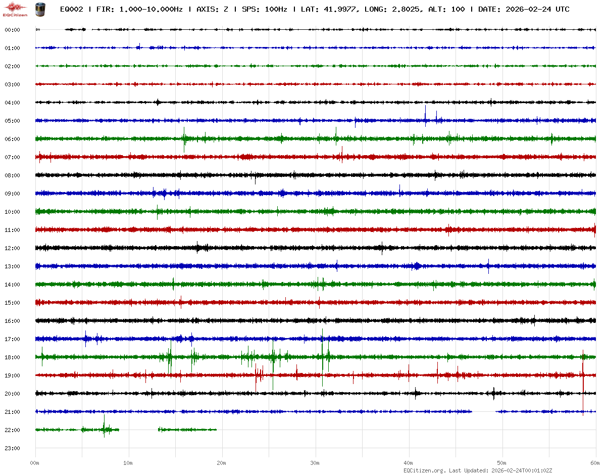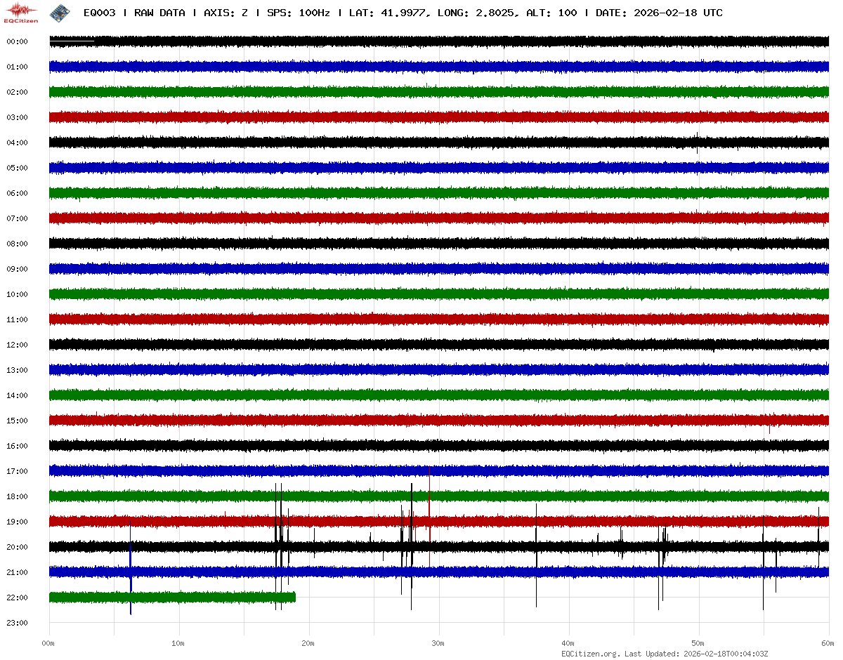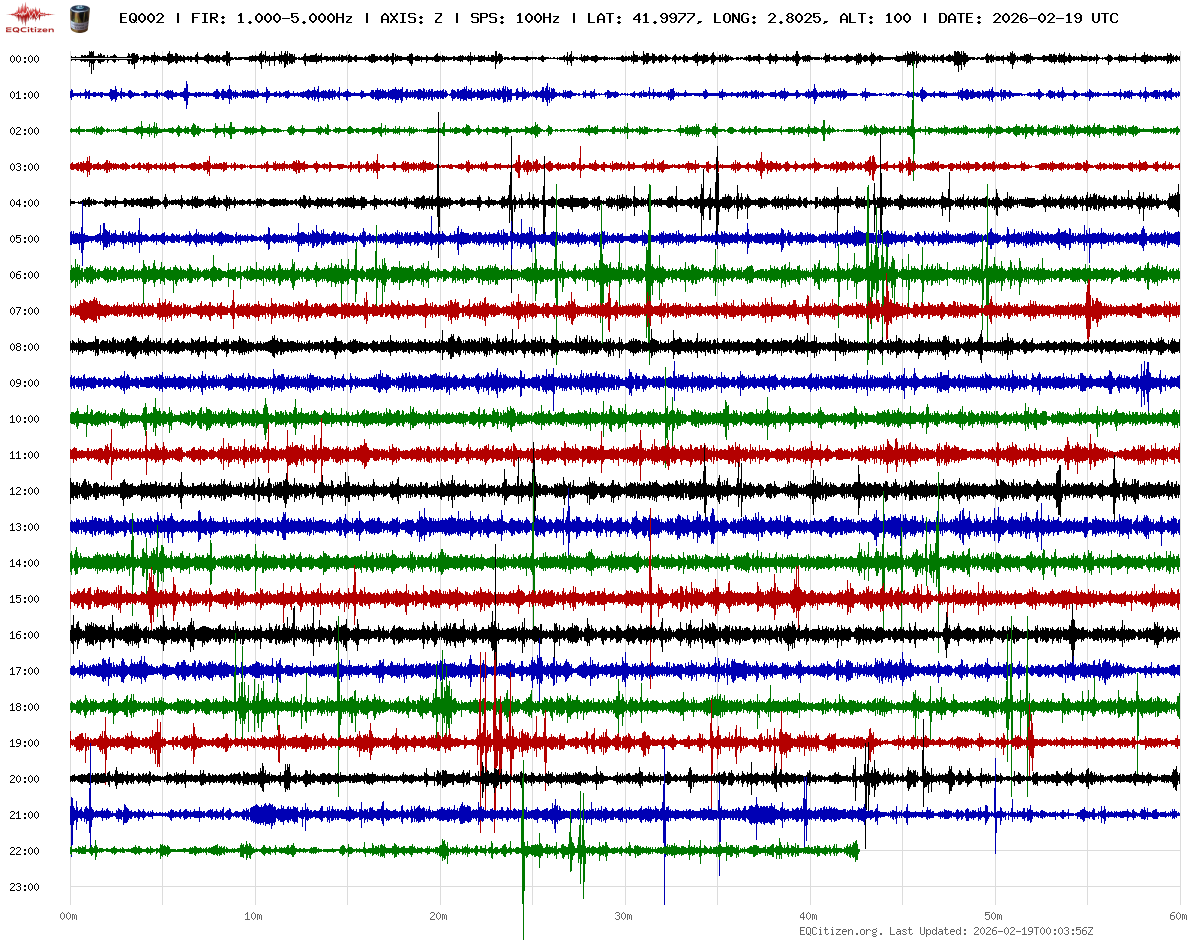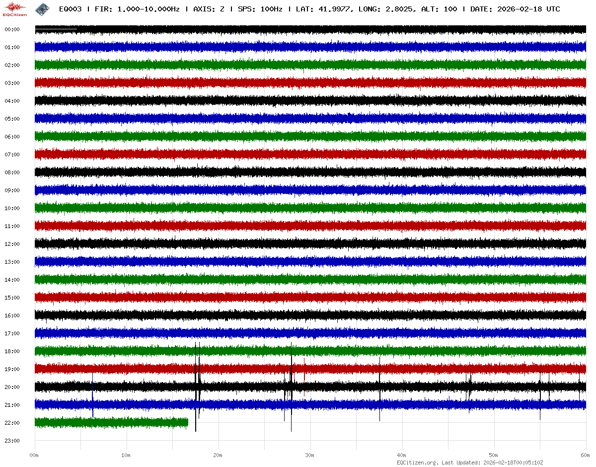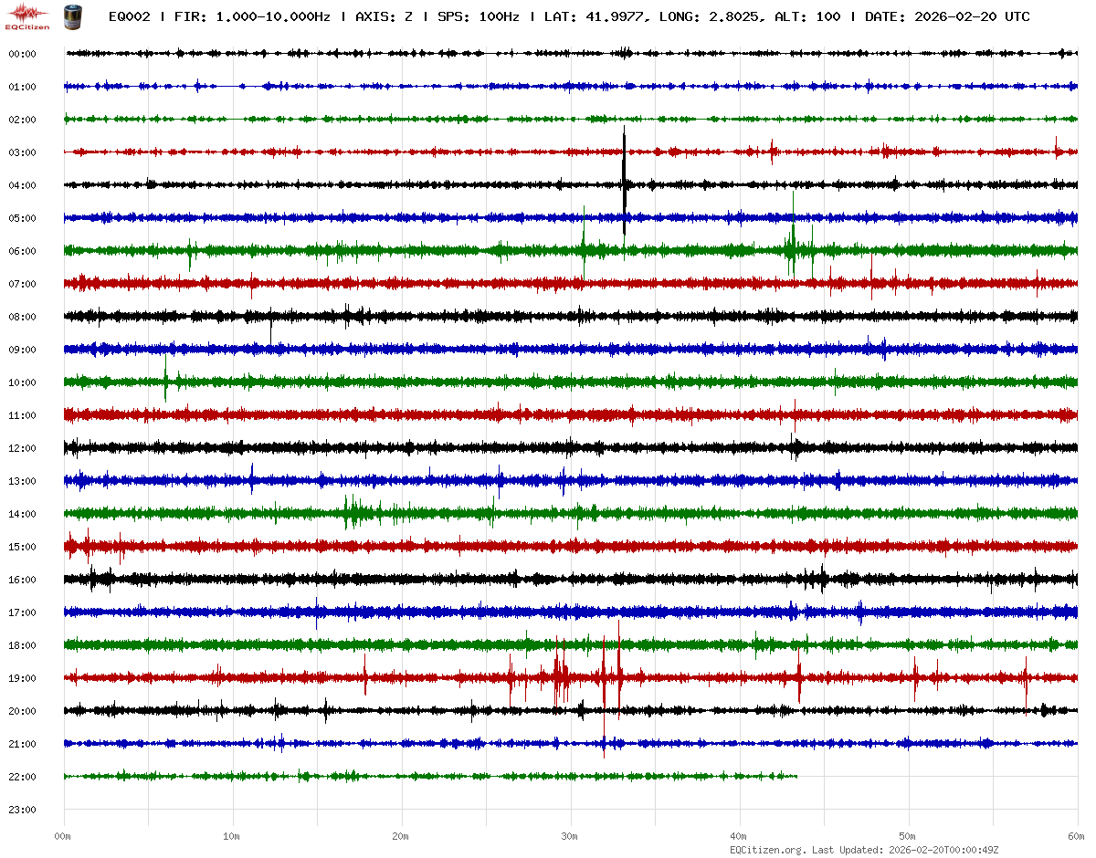 Traffic, construction, everyday vibrations, and even a garbage truck generate vibrations that can appear on the helicorder as abrupt movements or unusual patterns. These don't always correspond to actual seismic activity, but rather reflect daily interaction with neighbors, public services, and the constant rhythm of the city.