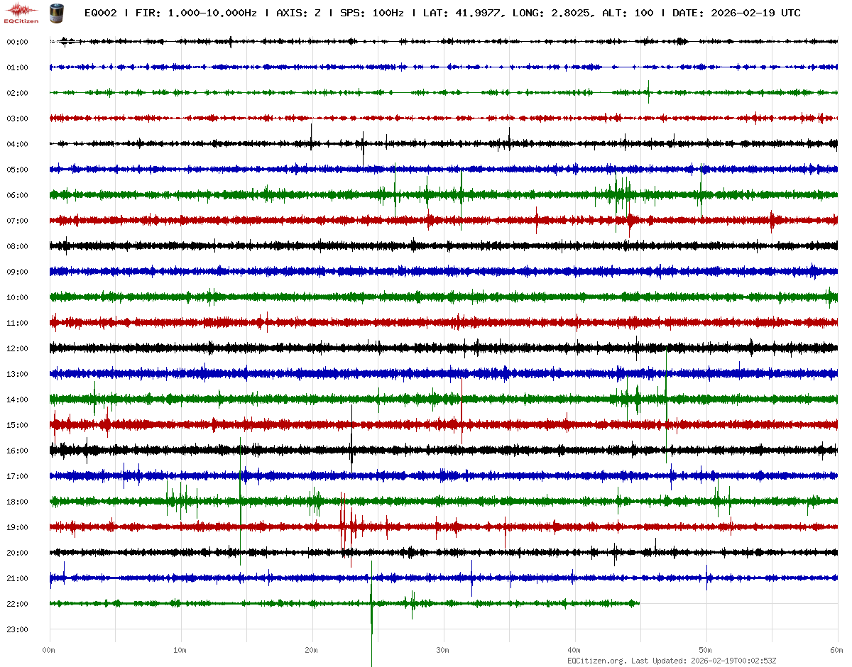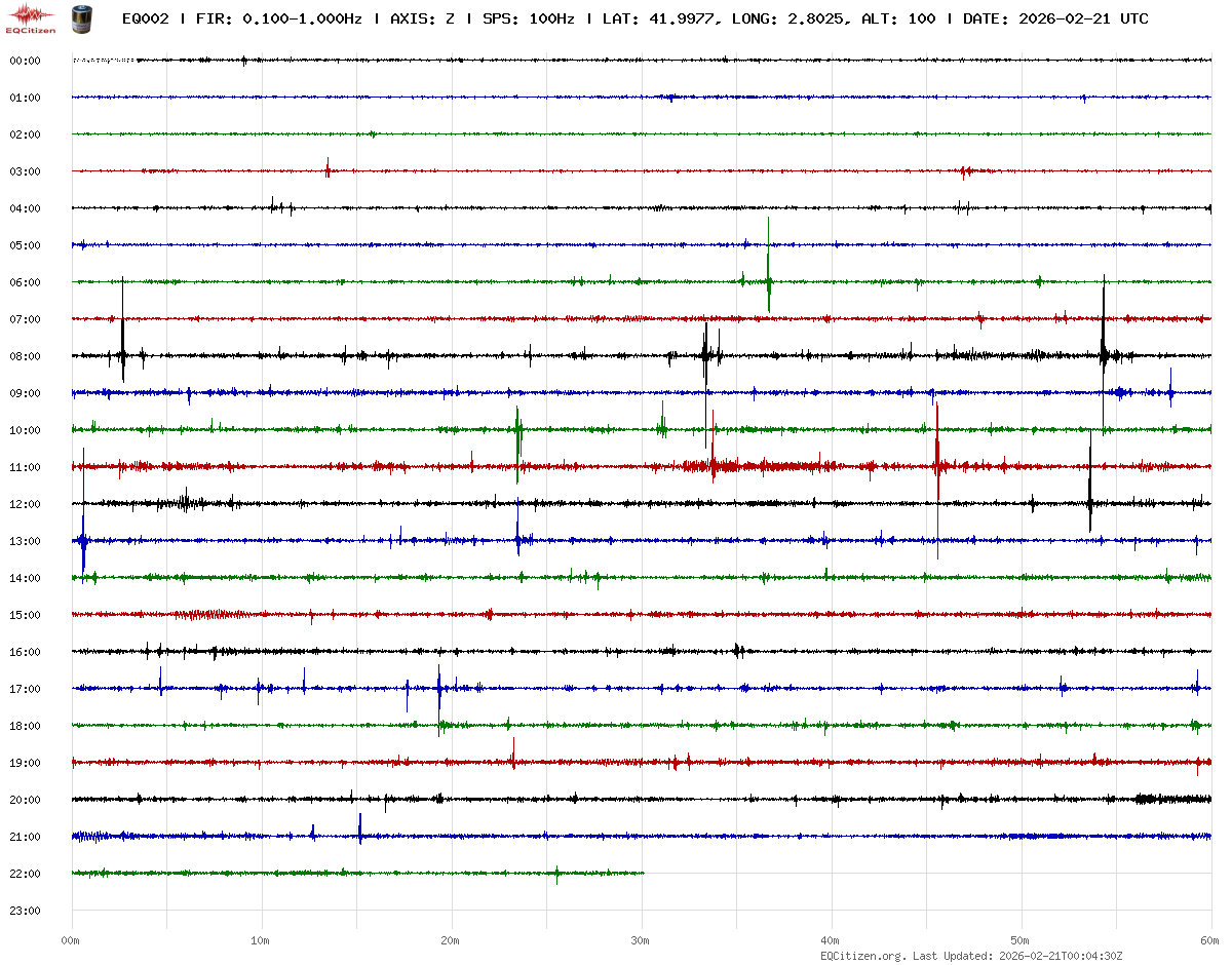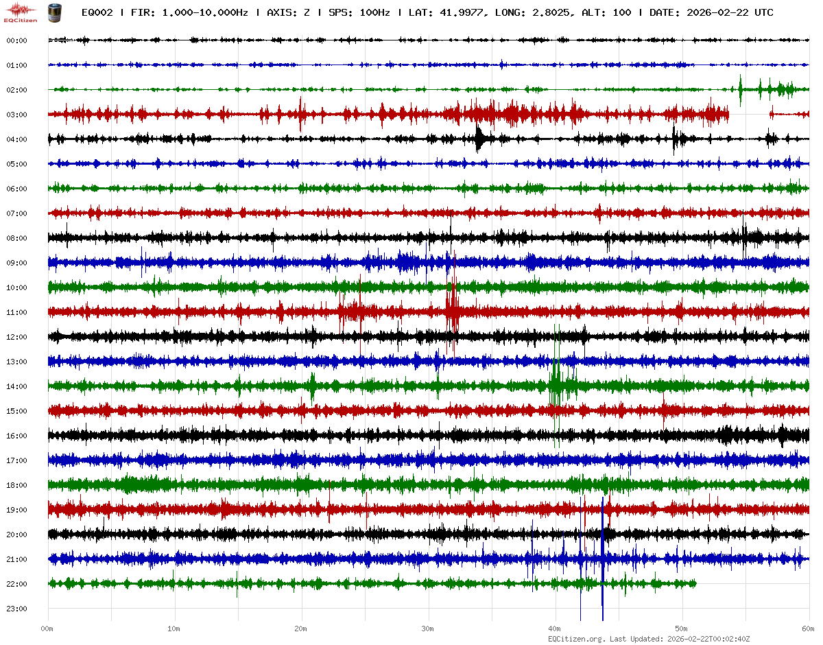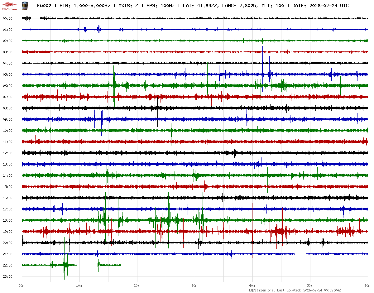 Traffic, construction, everyday vibrations, and even a garbage truck generate vibrations that can appear on the helicorder as abrupt movements or unusual patterns. These don't always correspond to actual seismic activity, but rather reflect daily interaction with neighbors, public services, and the constant rhythm of the city.