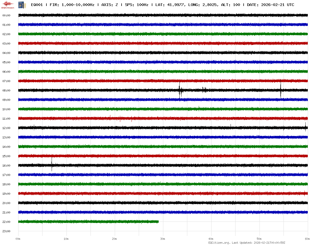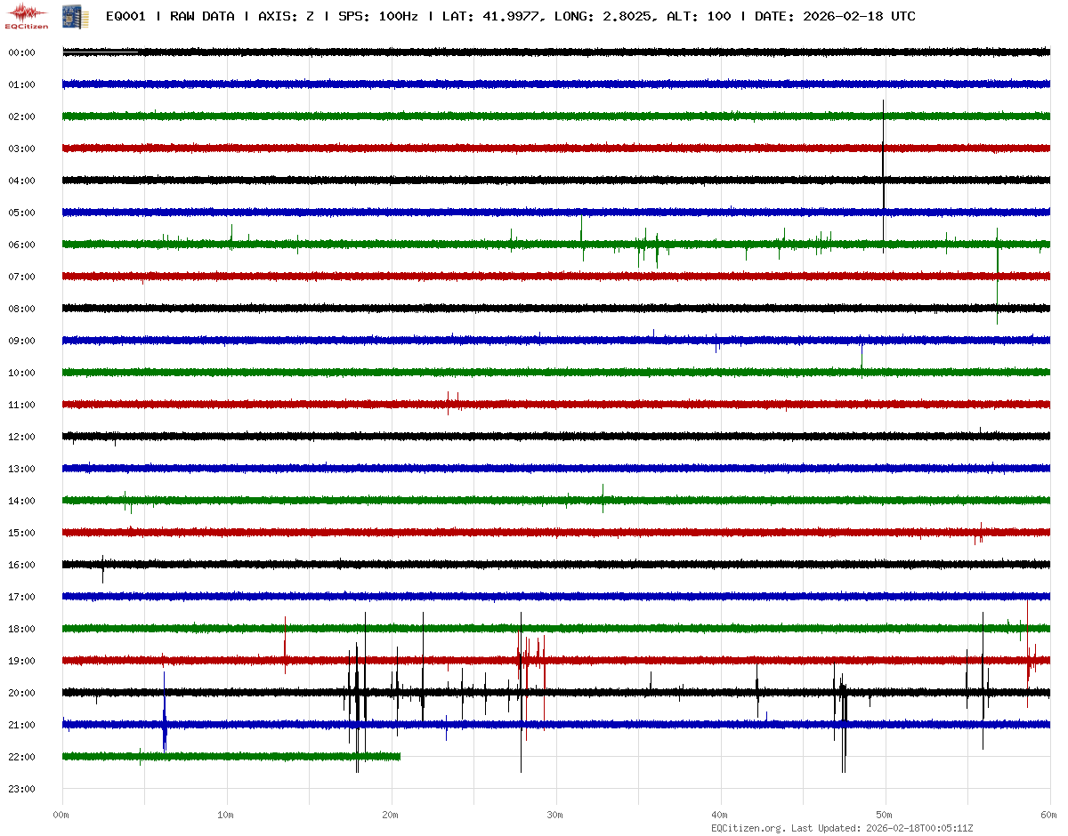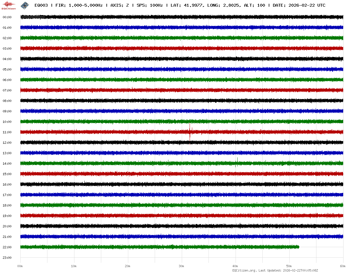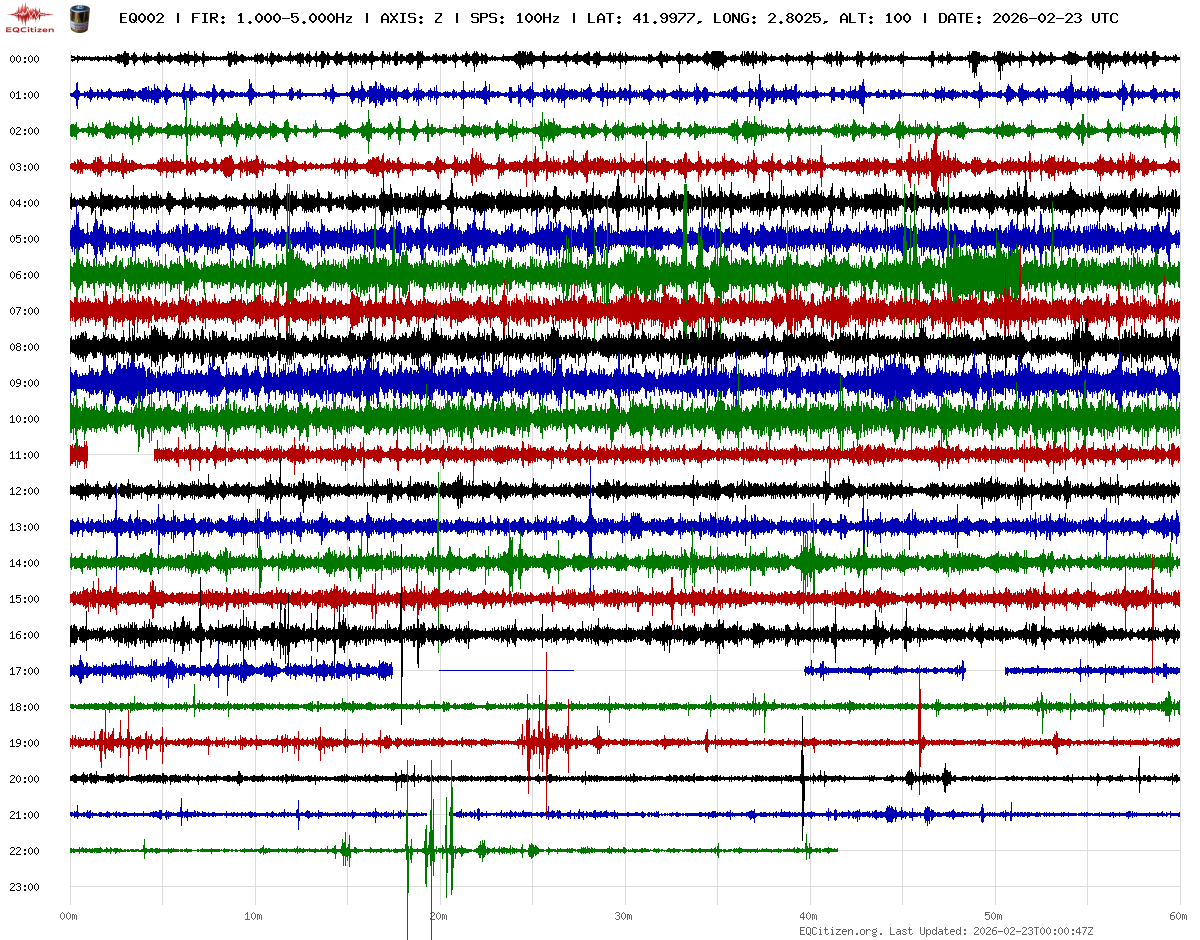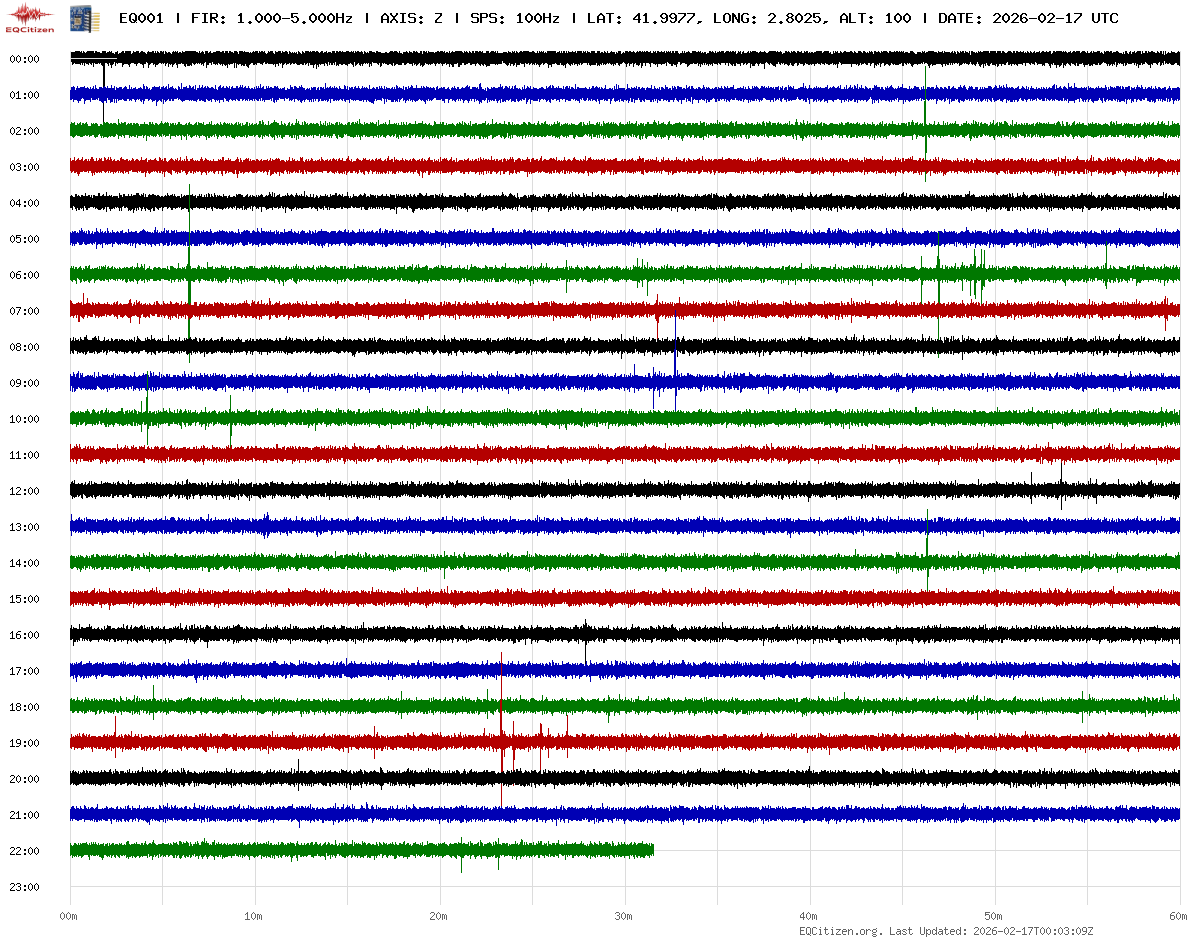 Traffic, construction, everyday vibrations, and even a garbage truck generate vibrations that can appear on the helicorder as abrupt movements or unusual patterns. These don't always correspond to actual seismic activity, but rather reflect daily interaction with neighbors, public services, and the constant rhythm of the city.