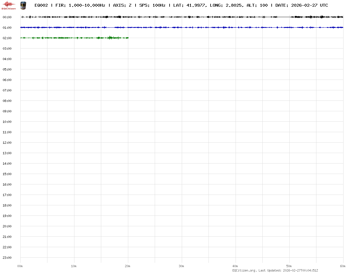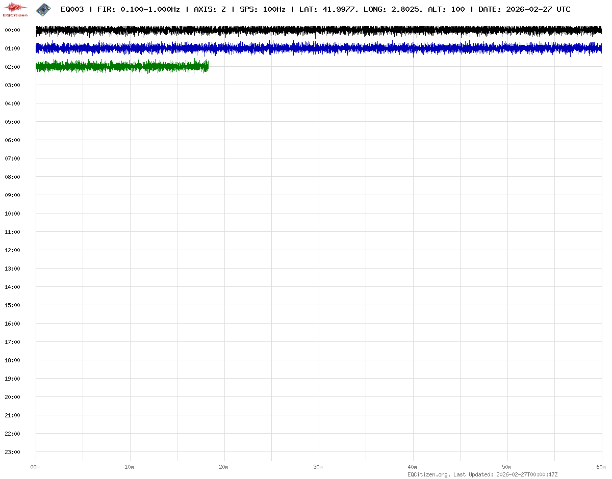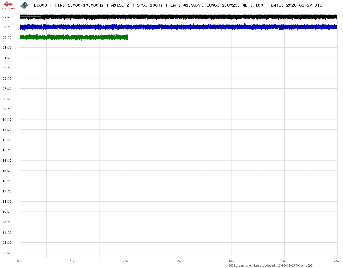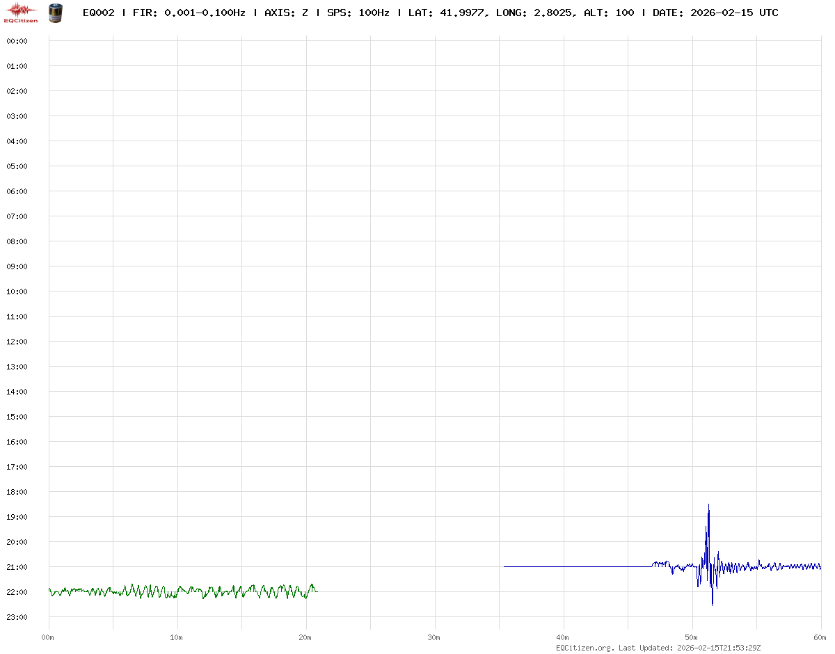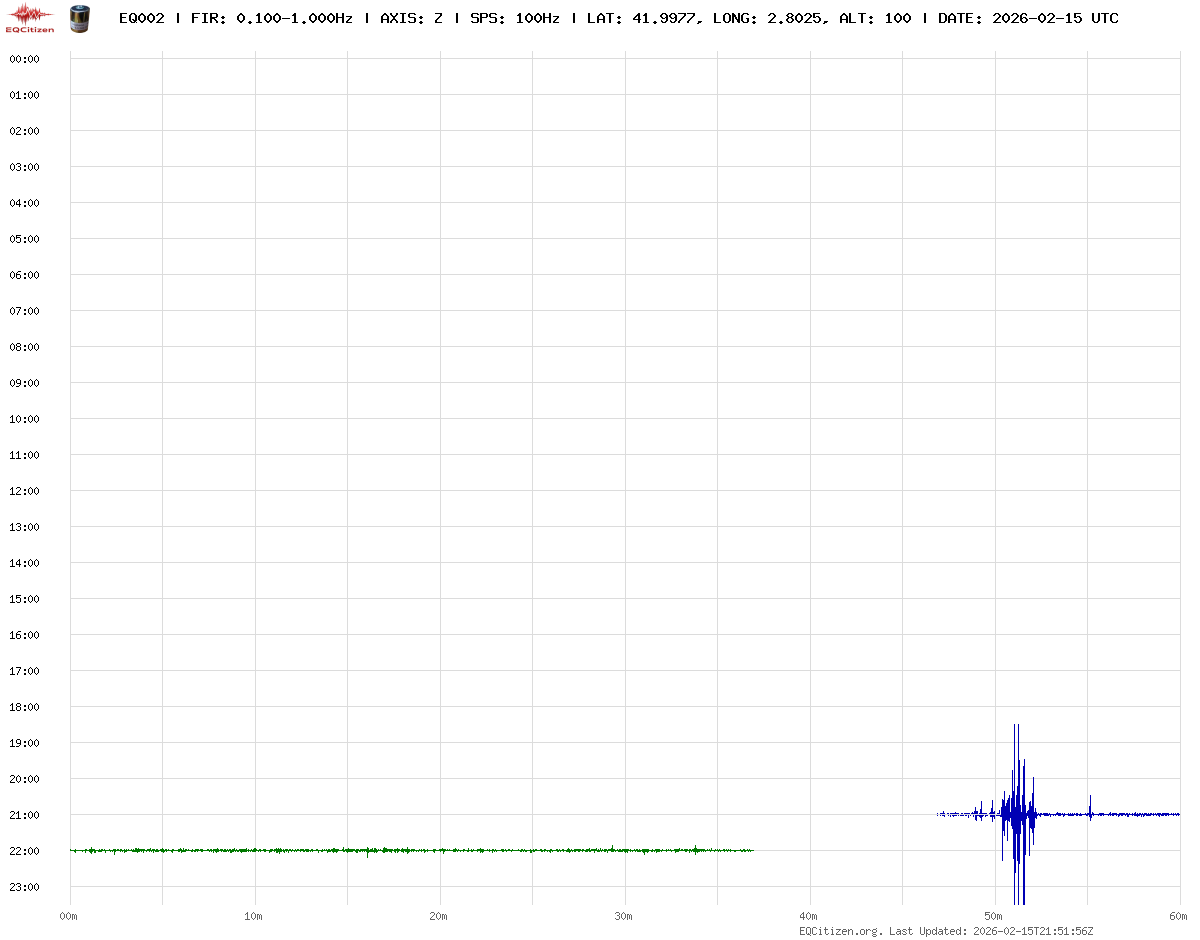 By combining low-cost hardware with robust software, EQCitizen fosters a culture of curiosity and preparedness. It's not just a tool: it's an invitation to observe, learn, and connect. From local tremors to global seismic events, every signal matters. EQCitizen ensures that those signals are captured, visualized, and shared, democratizing seismology.