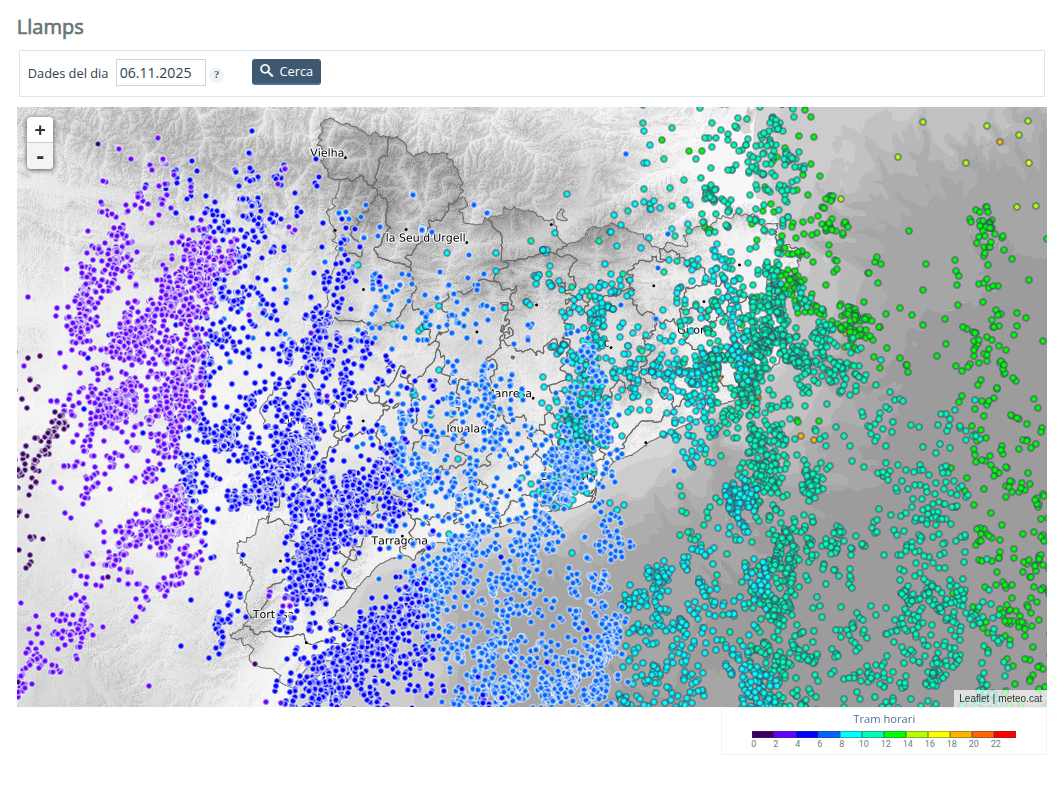 Here is the record of electrical discharges that can be consulted on the official website: https://www.meteo.cat/observacions/llamps?dia=2025-11-06