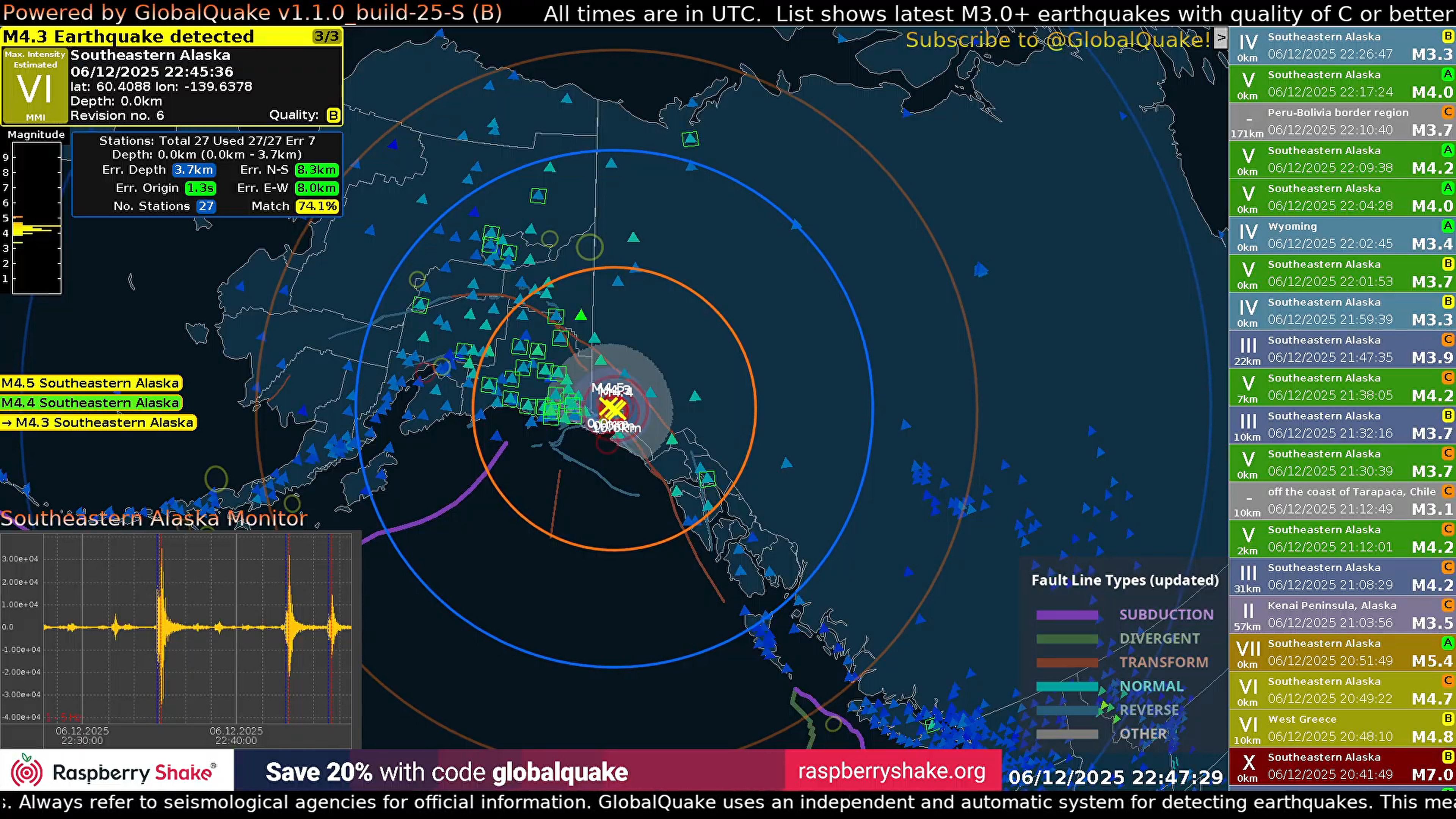 Se están sucediendo decenas de réplicas cada pocos minutos después del terremoto M7.0 de Alaska. Estas réplicas están teniendo una magnitud media mayor de M4.0. Se puede seguir en directo desde el canal de GlobalQuake
