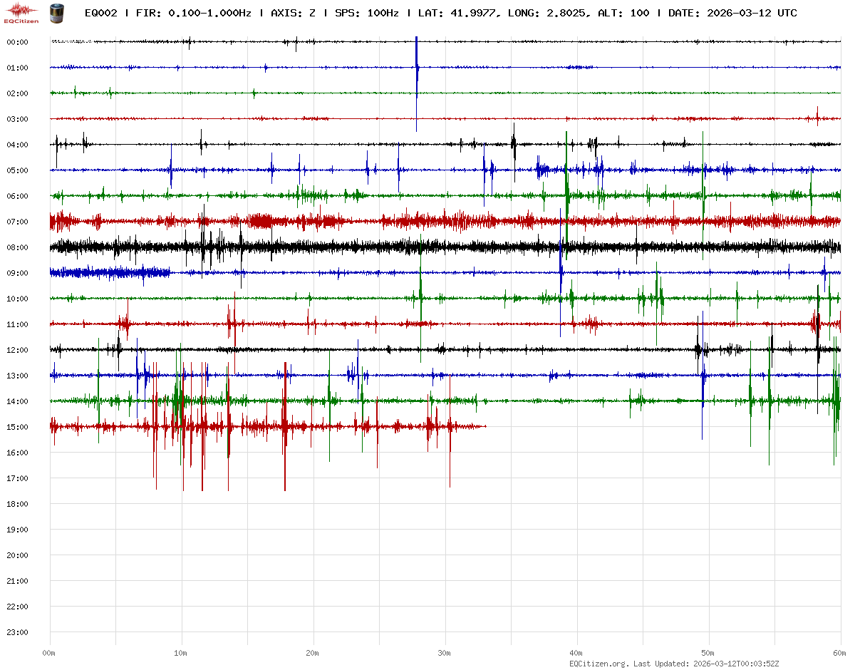 Cada unidade captura movimentos do solo, dispara alarmes, guarda e transmite dados mseed, cria visualizações estilo helicorder que são instantaneamente acessíveis através da web, permitindo a partilha transparente e a análise colaborativa. O sistema foi concebido para ser resiliente e autónomo, com registo automático de dados, sincronização de data e hora e integração opcional com sistemas de alerta ou redes locais. Quer esteja instalado numa sala de aula, numa cabana remota ou numa cave urbana, o EQCitizen contribui para uma infraestrutura descentralizada de sensibilização para os sismos que valoriza a acessibilidade, a redundância e a ciência orientada pela comunidade.